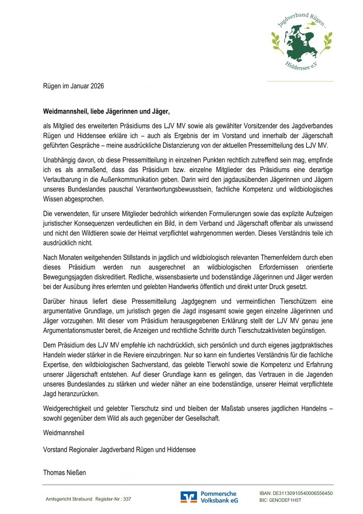 - Stellungnahme zur Pressemitteilung LJV M-V